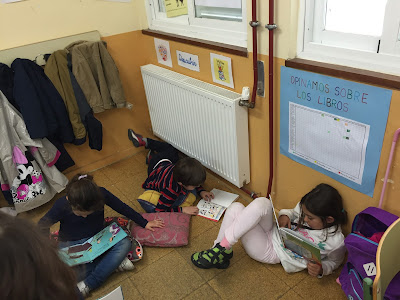 Como el año pasado los alumnos/as fueron muy buenos los Reyes Magos les han dejado un regalo para todos en clase, unos libros muy molones. Para sacarle provecho al regalo, hemos creado nuestra biblioteca de aula al final de la clase. Allí encontramos los libros y los cojines, que los chicos y chicas utilizan para leer más cómodamente. A continuación se muestran algunas fotos, galería que se irá ampliando con el paso de los días.